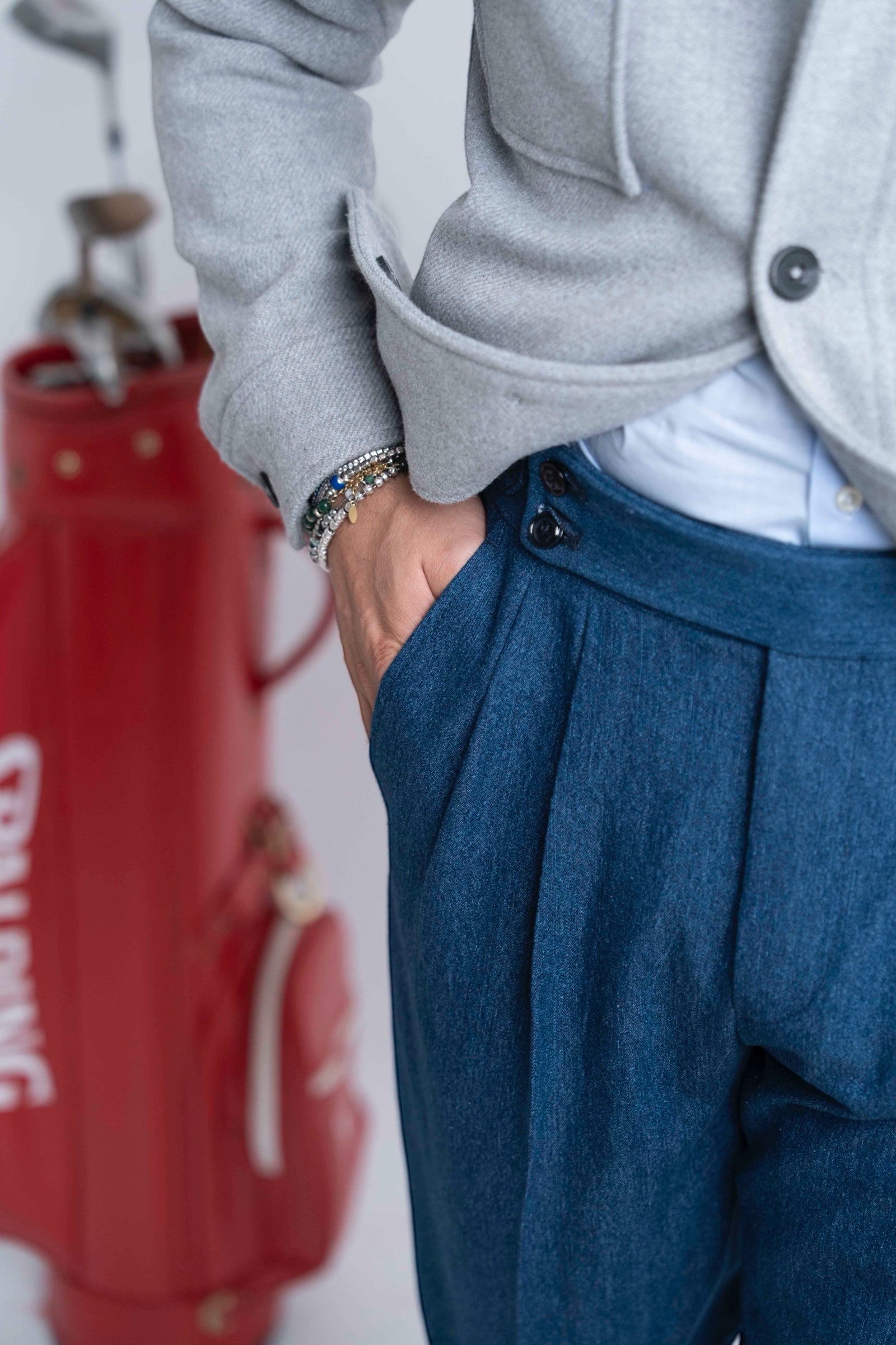 Jeans sartoriale vita alta con regolatori